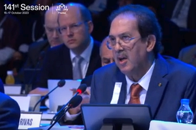 tsx pix 2023-1015 berraf mustapha ioc session 750 Algerian IOC member Mustapha Berraf at the IOC Session in India, asking for IOC President Thomas Bach to be extended to an extra term. (Photo: IOC video screenshot)